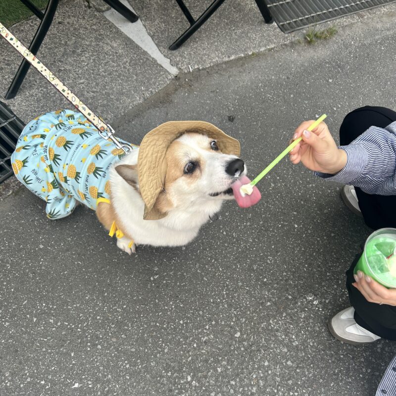 わんこもクリームソーダをおいしそうに食べてる♡