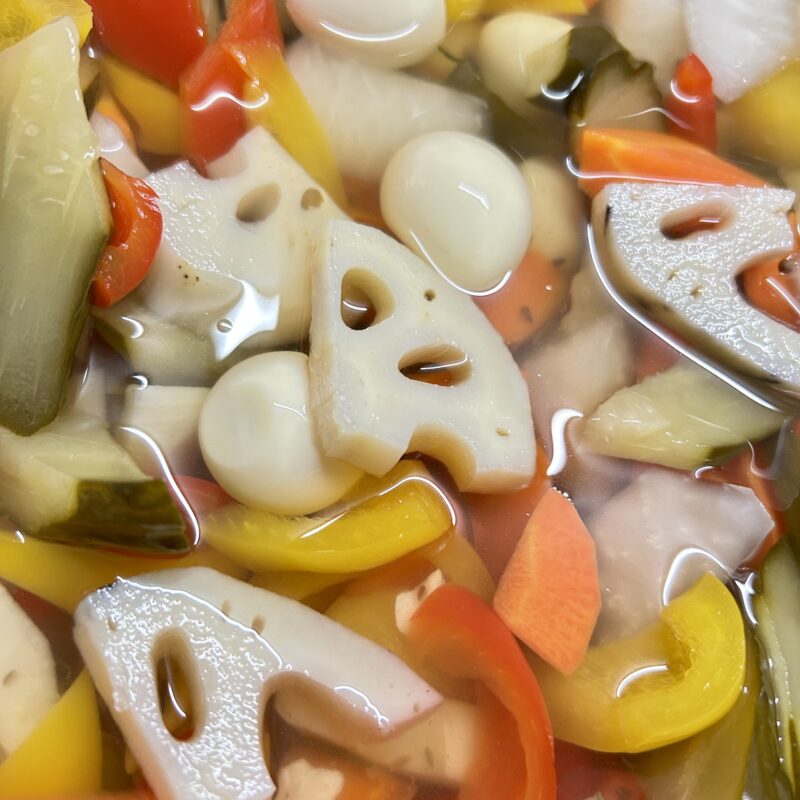 これまた定番の「夏野菜とうずら卵のピクルス」