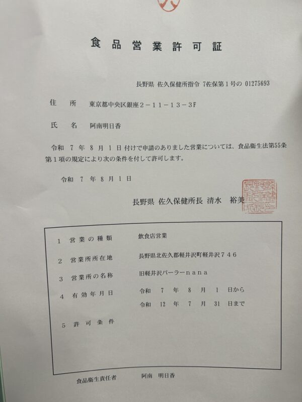 8/1、営業許可証更新!!!